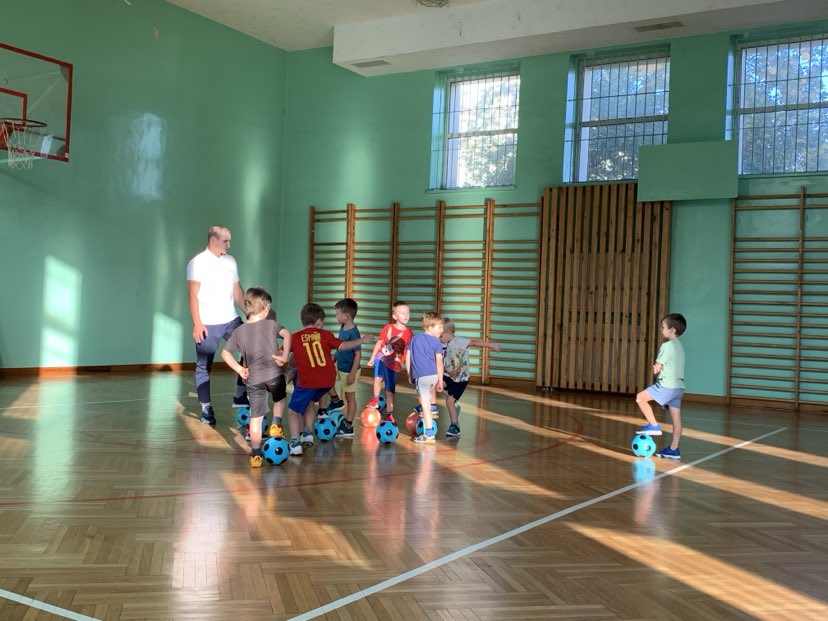 Nasze cele: – zachęcenie dzieci do aktywności fizycznej (poprawa sprawności ogólnej), – dobra zabawa, uśmiech na twarzy dziecka, – wprowadzenie elementów gry w piłkę nożną (wplecione w zabawy ruchowe), – zaznajomienie z postawą fair play.